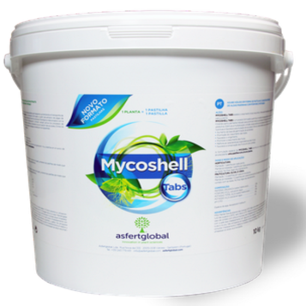 Mycoshell Tabs é um biofertilizante que, por conter fungos micorrízicos arbusculares da espécie Glomus intraradices e extrato de algas altamente concentrado da espécie Ascophyllum nodosum, acelera o crescimento inicial, reduzindo o stress após transplante, aumenta a absorção de nutrientes pela planta (Fósforo e Azoto), incrementando também a tolerância ao stress hídrico e à salinidade, conferindo-lhe uma maior resistência fisiológica.