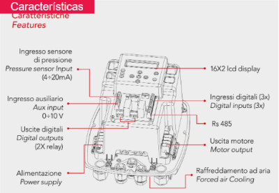 • Nettuno é um dispositivo eletrônico que utiliza tecnologia inverterbase que controla bombas elétricas tradicionais (de superfície, verticais e submersíveis), funções de partida e parada. Graças a esta tecnologia, ele pode modular a frequência (Hz) da corrente de entrada do motor para ajustar a velocidade ( rpm) de acordo com a demanda de água do sistema.